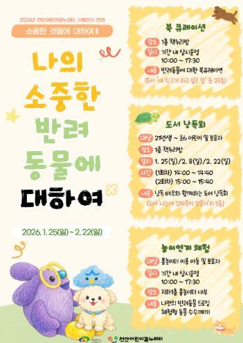 전시의 핵심 메시지를 어린이와 가족의 실제 경험으로 확장하기 위해 반려동물이라는 친숙한 소재로 ▲북 큐레이션 ▲도서 낭독회 ▲놀이 연계 체험 프로그램을 운영한다.