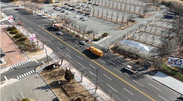 훈련에서는 제설차량을 활용한 신속한 도로 정비와 염화칼슘 살포, 교통 통제 및 우회도로 안내, 현장 안전관리 등 실제 재난 발생 시 적용 가능한 대응 절차를 단계별로 점검했다.