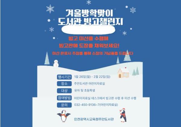 인천시교육청주안도서관, 겨울방학 ‘미션 빙고’ 독서 이벤트 운영