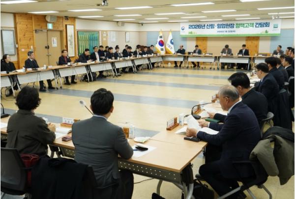 이번 간담회는 지난해 대통령 업무보고에서 밝힌 2026년 산림정책 추진방향과 주요 과제를 정책고객에게 공유하고, 의견을 듣기 위해 마련된 자리로 경제, 환경, 사회·청년, 재난 등 4개 분야로 나눠 진행됐다.