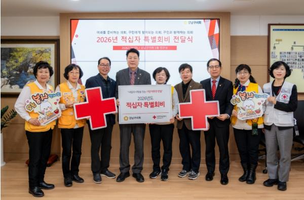 [한국제일신문, 김성옥기자] 강남구의회는 23일 오전 구의회 5층 접견실에서 ‘2026년 적십자 특별회비 전달식’을 실시했다.
