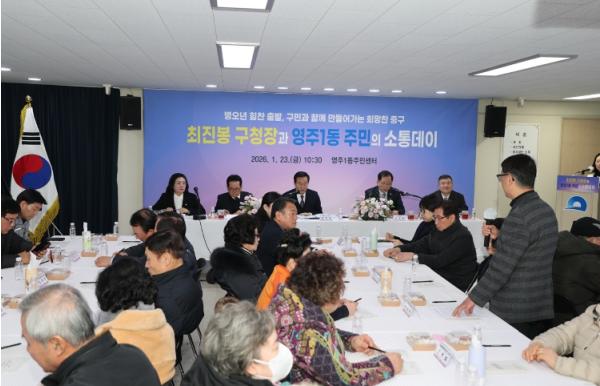 최진봉 중구청장은 “주민 여러분의 소중한 의견을 직접 듣는 뜻깊은 소통의 시간을 가졌으며, 지역 현안에 대해 주민과 함께 고민하고 구정에 적극 반영해 나가겠다.”고 전했다.