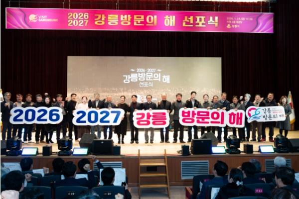 강릉시는 23일 금요일 오후 강릉시청 대강당에서 김홍규 강릉시장, 최익순 강릉시의회 의장, 최길영 국제관광도시 시민실천운동 추진위원회 위원장을 비롯해 유관 기관장과 시민 등 1,000여 명이 참석한 가운데 ‘2026-2027 강릉방문의 해’ 선포식을 성황리에 개최했다고 밝혔다.