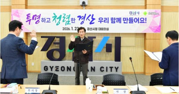 [한국제일신문, 김성옥기자] 경산시는 23일 경산시청 대회의실에서 2026년 간부 공무원 반부패·청렴실천 결의대회를 개최했다.