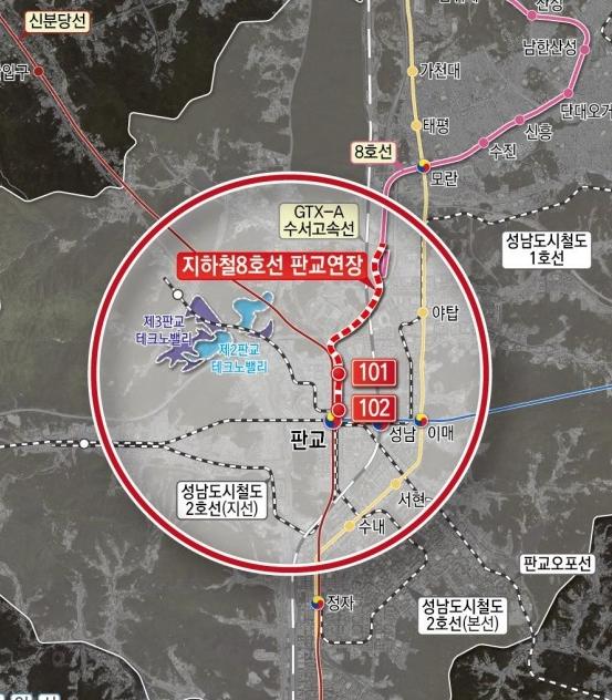 지하철 8호선 판교연장사업은 총사업비 약 4515억원을 투입해 현행 모란차량기지에서 판교역까지 약 3.78km를 연장하는 사업으로, 판교테크노밸리 등 주요 업무·산업시설 접근성을 높이고 수도권 남부 교통 여건 개선을 목표로 추진되고 있다.