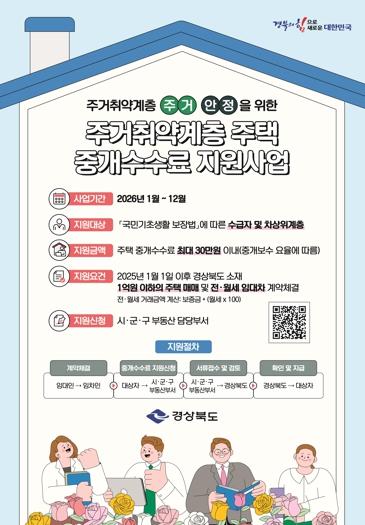 이번 사업은 경상북도 주관으로 시행되며, '국민기초생활 보장법'에 따른 기초생활수급자와 차상위계층을 대상으로 한다. 2025년 1월 1일 이후 공인중개사를 통해 1억 원 이하의 주택 매매 또는 전·월세 임대차 계약을 체결하고, 구미시로 전입신고를 완료한 가구에 대해 실제 지급한 중개보수를 최대 30만원 한도 내에서 지원한다.