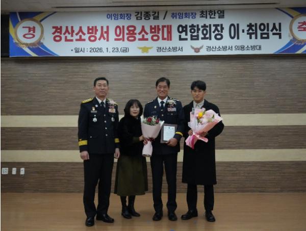 한창완 경산소방서장은 격려사에서 “재임 기간 동안 솔선수범하며 연합회를 이끌어 온 김종길 전 연합회장께 깊이 감사드린다”며, “취임하신 최한열 연합회장께서 전임 회장이 이룬 성과를 바탕으로 더욱 활력 넘치는 의용소방대로 발전시켜 나갈 것이라 믿는다”고 말했다.