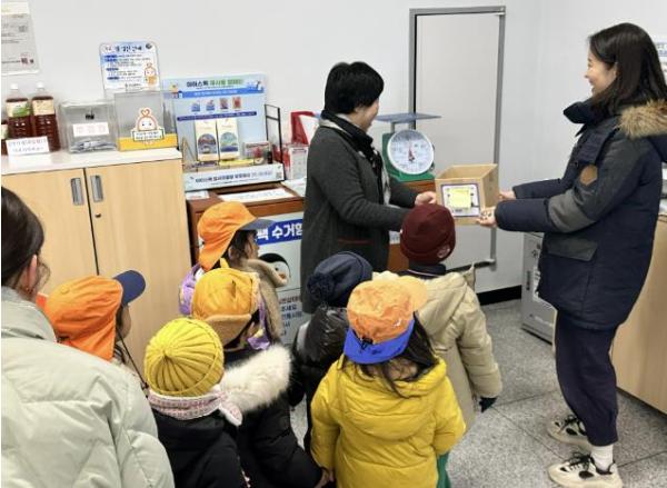어린이집 원아들이 생활 속에서 발생한 폐건전지를 직접 모아 행정복지센터를 방문해 교환했다.
