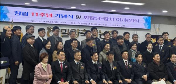 [한국제일신문, 김성옥기자] 밀양시 삼문동 청년회(회장 박진희)는 지난 23일 밀양축협 대회의실에서 창립 11주년 기념식 및 회장단 이·취임식을 개최했다.