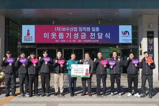 (자)보수산업은 지난 1월 22일, 부산 남구청을 방문해 직원들이 십시일반 정성을 모아 마련한 성금 500만 원을 기부했다고 밝혔다.