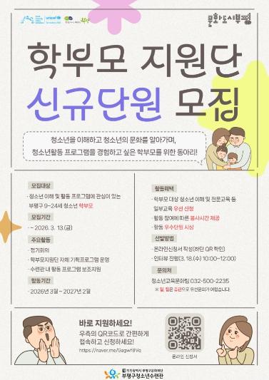 부평구청소년수련관 2026년 제 7기 학부모지원단 신규단원 모집