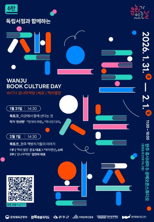 [한국제일신문, 김성관기자] 완주문화재단은 오는 1월 31일부터 2월 1일까지 이틀간 완주 휴시네마와 공예오픈스튜디오에서 '문화가 있는 날 6탄 – 책으로 잇는 완주'를 개최한다.