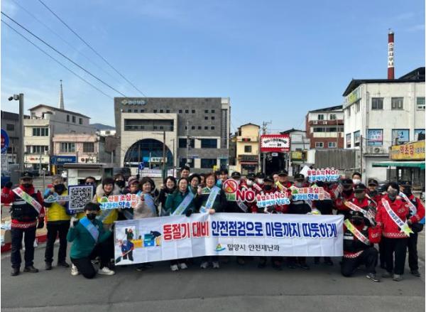 [한국제일신문, 김성옥기자] 경남 밀양시는 26일 밀양아리랑시장에서 공무원, 여성민방위기동대, 안전보안관, 산불전문예방진화대 등 30여 명이 참여한 가운데 2026년 첫 안전점검의 날 캠페인을 실시했다고 밝혔다.