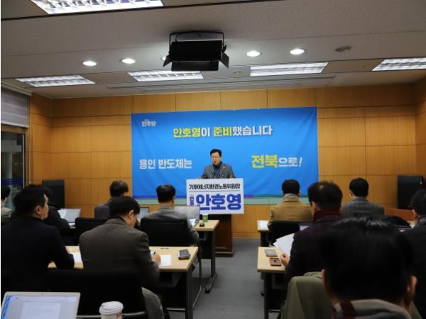 [한국제일신문, 김성옥기자] 전북도지사 출마를 선언한 안호영 국회의원(국회 기후에너지환경노동위원장)은 26일 기자회견을 열고 “수년간 멈춰 서 있던 새만금 수상태양광 사업의 핵심 난제였던 전력망(계통) 연결 문제가 해결 국면에 들어섰다”며 “이를 계기로 전북이 첨단산업을 감당할 수 있는 실질적 전력 기반을 갖추게 됐다”고 밝혔다.