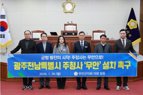 이호성 무안군의회 의장은 “광주·전남이 함께 살기 위해 시작한 행정통합인 만큼, 주청사의 전남도청 지정 원칙을 조속히 바로잡고 합의 정신에 맞게 후속 절차를 진행할 것을 강력히 촉구한다”고 밝혔다.