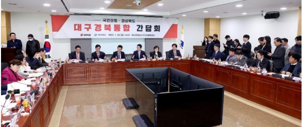 [한국제일신문, 김성옥기자] 경상북도와 국민의힘(경북도당위원장 구자근)은 26일 국회의원회관에서 대구경북통합 간담회를 열고 지역 국회의원의 다양한 의견을 수렴하고 국회와의 협력방안을 논의했다.