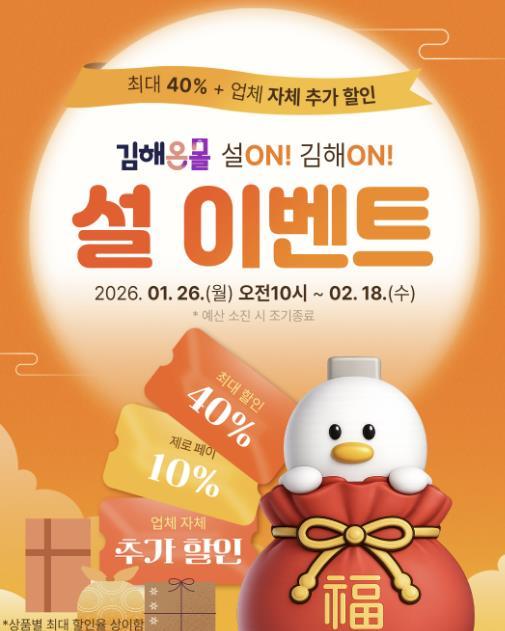 [한국제일신문, 김성옥기자] 김해의생명·산업진흥원은 설 명절을 맞아 지역 소상공인의 판로 확대와 소비 촉진을 위해 온라인 쇼핑몰 ‘김해온몰’에서 설맞이 기획전을 운영한다. 이번 기획전은 1월 23일부터 2월 20일까지 진행되며, 다양한 할인 쿠폰과 이벤트를 통해 시민들에게 합리적인 명절 소비 기회를 제공할 예정이다.