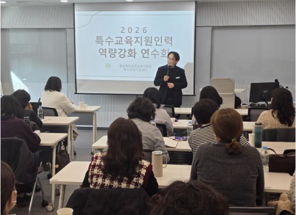 [한국제일신문, 김성옥기자] 김천교육지원청은 2026년 1월 26일, 관내 특수교육실무사 및 사회복무요원을 대상으로 '2026 특수교육지원인력 역량강화 연수'를 실시했다.