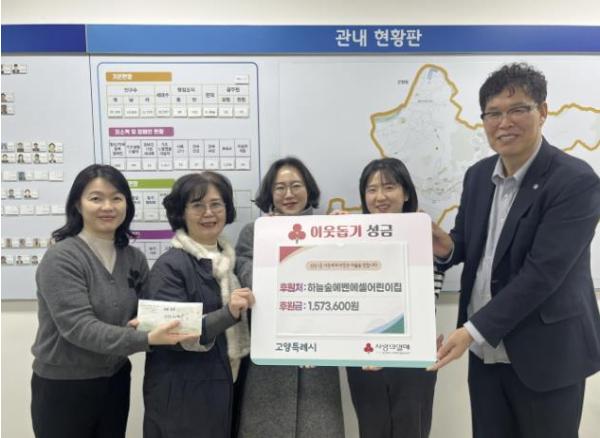 [한국제일신문, 이양섭기자] 고양특례시 덕양구 삼송1동은 지난 26일, 하늘숲에벤에셀어린이집으로부터 설맞이 성금 157만 3천 원을 전달받았다고 밝혔다.