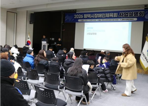 [한국제일신문, 신정수기자] 평택시장애인체육회는 지난 22일 평택시장애인회관 4층 대강당에서 장애인 이용시설 관계자와 초중고등학교 특수학급 교사 등 120여 명을 대상으로 ‘2026년 사업설명회’를 개최했다.