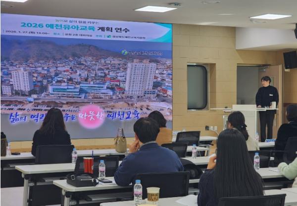 [한국제일신문, 김성옥기자] 경상북도예천교육지원청은 1월 27일 예천교육지원청 대회의실에서 관내 유치원 원감 및 교육과정 담당 교사 17명이 참석한 가운데 2026학년도 예천유아교육 계획 설명회를 개최했다.