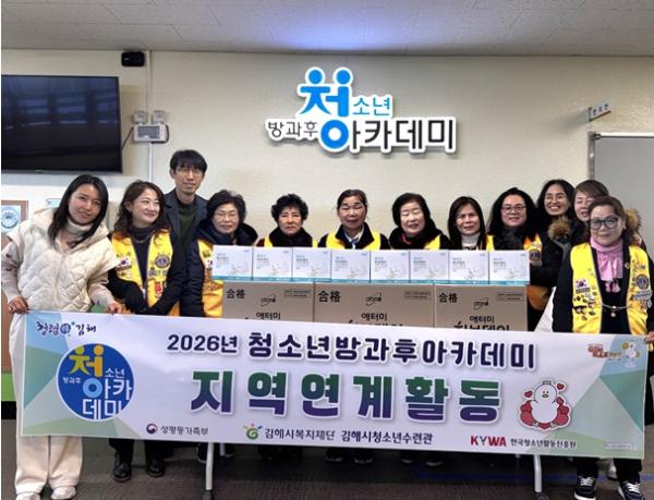 김해시복지재단(대표이사 임주택) 김해시청소년수련관 방과후아카데미는 지난 22일, 진영 금병라이온스클럽(회장 이경자)과 연계하여 참여 청소년을 위한 위생용품 지원 전달식을 진행했다.