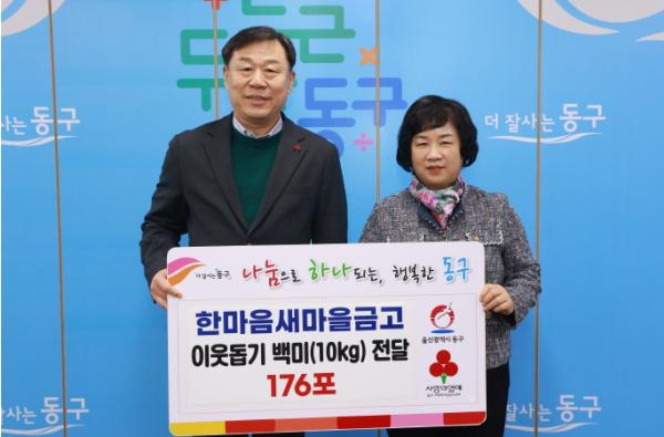 김종훈 동구청장은 “경제적으로 어려운 시기임에도 불구하고 매년 잊지 않고 이웃을 살펴주시는 한마음새마을금고에 감사드린다”라며 “기탁받은 성품은 도움의 손길이 절실한 이웃들에게 소중히 전달하겠다”라고 말했다.