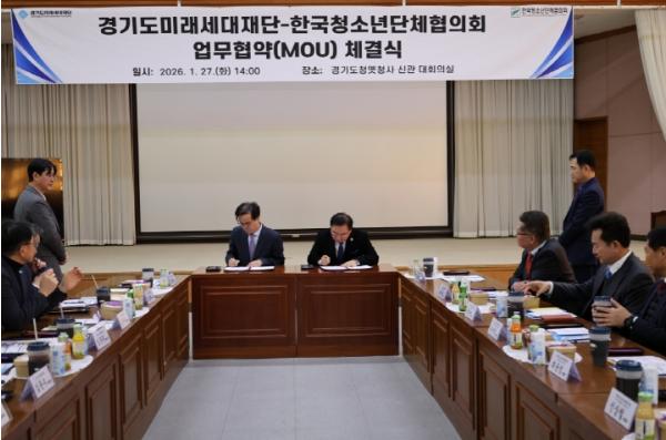 [한국제일신문, 김성옥기자] 경기도미래세대재단은 27일 수원시 팔달구 옛 경기도청사에서 한국청소년단체협의회와 청소년의 건강한 성장과 글로벌 역량 강화를 위한 업무협약을 체결했다.