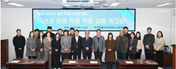 [한국제일신문, 김성옥기자] 제주특별자치도의회 의회운영위원회는 지난 1월 27일, 도의회 의사당 소회의실에서 2026년 상반기 정기인사로 전입한 직원 및 실무 역량 배양이 필요한 직원들을 대상으로 ‘역량 강화 워크숍’을 개최했다.