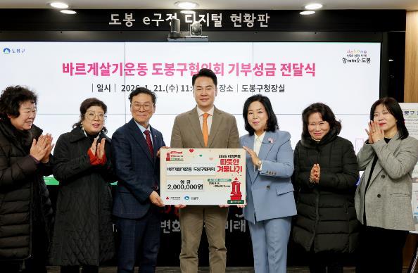 [한국제일신문, 김성옥기자] 서울 도봉구는 지난 1월 21일 바르게살기운동 도봉구협의회 여성회로부터 성금 200만 원을 전달받았다.