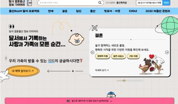 연계된 '달서 결혼출산 정보 다이어리' 플랫폼은 결혼·임신·출산·영유아·아동·다자녀 등 생애 단계별 정책 정보를 체계적으로 제공하고 있다.