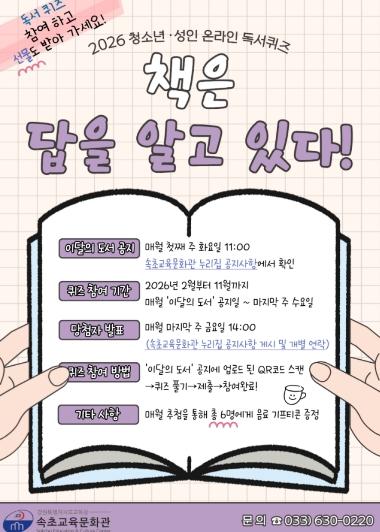 속초교육문화관, 2026년 청소년·성인 온라인 독서퀴즈 ‘책은 답을 알고 있다’ 운영