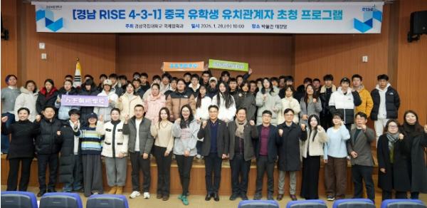 [한국제일신문, 김성옥기자] 경상국립대학교는 경남RISE사업의 ‘외국인 유학생 유치·지역정주 원스톱 지원 사업’의 일환으로 ‘중국 유학생 유치 관계자 초청 프로그램’을 운영한다.