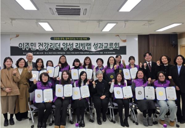 이날 행사는 △이주민 건강리더 양성 생활 실험실(리빙랩) 운영 성과 공유 △수료자 소감 발표 △수료증 수여 △정책 및 제도 연계를 위한 토론 등이 진행됐다.