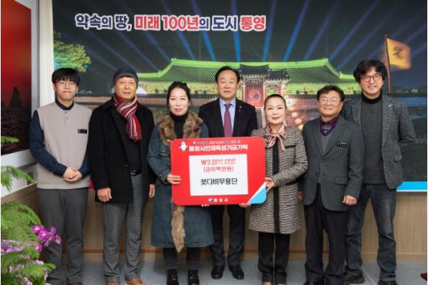 꽃다비무용단(단장 이세희)은 지난 26일 통영시(시장 천영기)를 방문해 통영시 인재육성기금 200만원을 기탁했다.