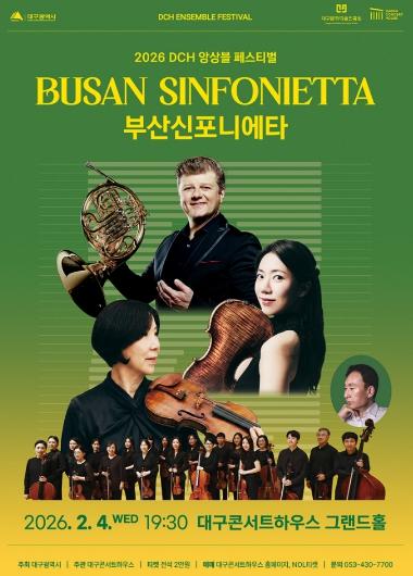 [한국제일신문, 김성옥기자] 대구콘서트하우스가 주최하는 2026 DCH 앙상블 페스티벌이 오는 2월 4일 저녁 7시 30분, 대구콘서트하우스 그랜드홀에서 부산신포니에타의 개막 공연과 함께 본격적인 막을 올린다.