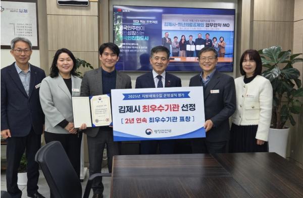 [한국제일신문, 이미란기자] 김제시가 행정안전부가 주관한 2025년 지방세외수입 운영실적 분석‧진단 평가에서 2년 연속 최우수 자치단체로 선정된 데 이어, 전북특별자치도 주관 지방세 징수실적 평가에서도 최고 등급인 ‘대상’을 수상하며 세입 행정 전반에서 전국 최고 수준의 성과를 거뒀다.