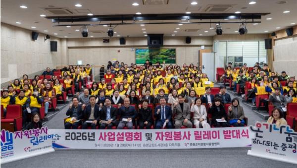 증평군자원봉사종합센터(대표 김남순)가 29일 증평군립도서관 다목적 홀에서 ‘2026년 자원봉사 릴레이 발대식’을 개최하고, 2026년 자원봉사활동의 본격적인 시작을 알렸다.