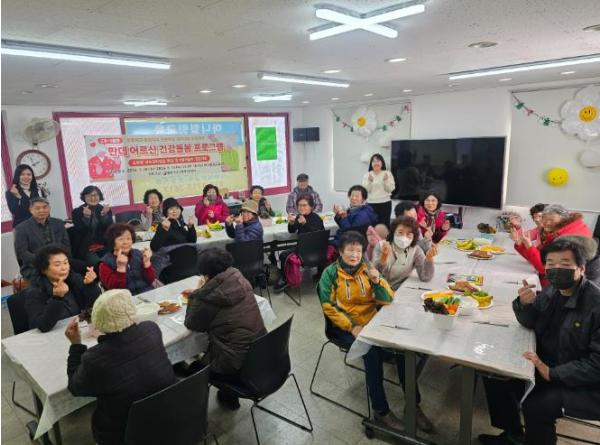판데마을 주민의 신체적·정신적 특성을 고려한 맞춤형 교육으로 1회차 프로그램은 1월 28일부터 5월 13일까지 총 15회 운영되며, 푸드심리상담, 창의실버놀이, 힐링치료, 특강 등 다양한 체험형·참여형 프로그램으로 구성된다.
