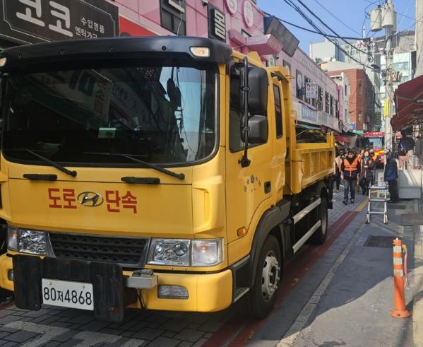 부산 중구, 국제시장 ‘만물의 거리’서 소방출동로 확보 훈련 실시