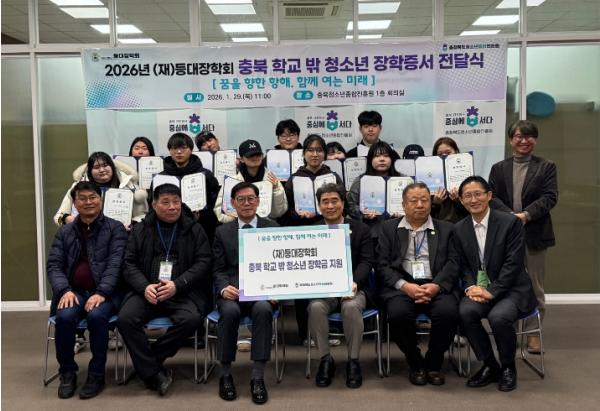 이어 김자중 충청북도청소년종합진흥원장은 “지역 청소년들을 위해 소중한 마음을 모아주신 등대장학회에 감사드리며, 진흥원 역시 학교 밖 청소년들이 소외되지 않고 각자의 재능을 꽃피울 수 있도록 촘촘한 지원망을 구축하는 데 최선을 다하겠다”고 화답했다.