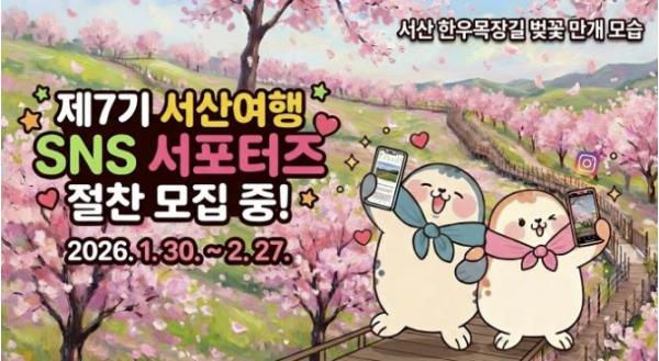 [한국제일신문, 김성옥기자] 충남 서산시는 2026년 제7기 서산여행 SNS 서포터즈를 운영한다고 밝혔다.