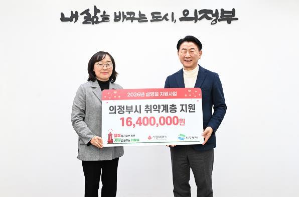 [한국제일신문, 김성옥기자] 의정부시는 1월 29일 경기사회복지공동모금회 북부사업본부(사랑의 열매)가 관내 저소득층을 위한 설 명절 지원금 1천640만 원을 기부했다고 밝혔다.