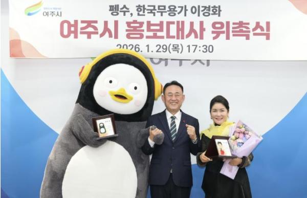 이충우 여주시장은 “어린이를 넘어 세대가 모두 공감하는 캐릭터로 성장한 펭수와 전통문화예술을 세계화로 이끈 이경화 명무님을 홍보대사로 모실 수 있어서 매우 뜻깊게 생각한다”면서 “문화 관광 도시로 새로운 도약에 나선 여주시의 홍보대사로서 큰 역할들을 기대한다”고 말했다.