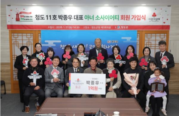 [한국제일신문, 김성옥기자] 강산농장 박종우 대표는 지난 27일 청도군청에서 아너 소사이어티 회원 가입식을 가졌다.