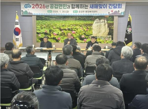 [한국제일신문, 김성옥기자] 상주시 공검면은 1월 30일 공검면 행정복지센터 회의실에서 기관·단체장과 이장 등 70여 명이 참석한 가운데 새해맞이 간담회를 개최했다.