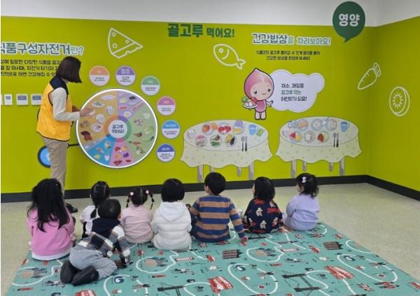 ▲다양한 체험교구를 통해 건강에 나쁜 담배와 술에 대해 알기 ▲배 속 여행으로 음식의 소화과정 알기 ▲식품구성 자전거를 활용한 영양교육 및 건강밥상 차리기 ▲건강한 성장을 위해 바르게 앉기 ▲이슬이와 함께 하는 잇솔질과 불소체험 등의 주제별로 건강체험을 하고 시청각 교육으로 배운 내용을 반복 학습하는 아동 건강교육 프로그램은 어린이집 및 유치원 대상으로 매주 수요일 운영하고 있으며, 참여 희망 기관은 네이버 폼으로 신청할 수 있다.
