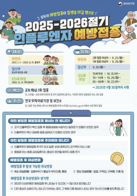 특히 시는 65세 이상 어르신을 대상으로 코로나19와 인플루엔자 백신을 무료로 접종하고 있다. 인플루엔자 백신은 임신부와 생후 6개월부터 13세 이하 어린이까지 확대해 무료 접종을 지원하고 있다.