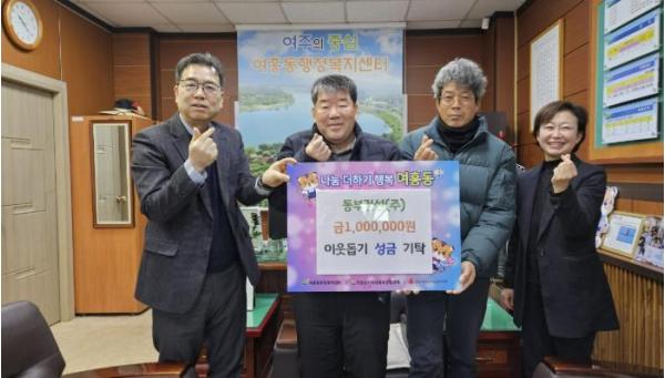 [한국제일신문, 김성옥기자] 여주 동부건설은 지난 29일, 지역 내 어려운 이웃을 돕기 위해 성금 100만원을 여흥동행정복지센터에 기탁했다.
