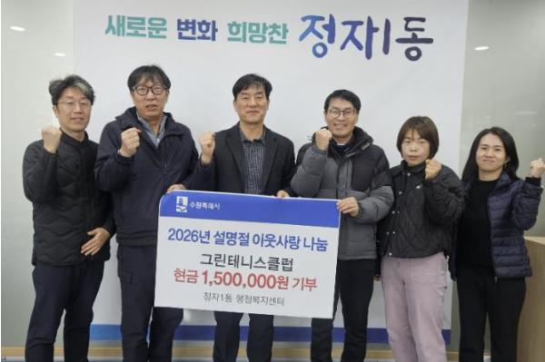 이명구 정자1동장은 “지역사회에서 꾸준히 나눔을 실천해 주시는 그린테니스클럽에 깊이 감사드린다”며 “소중한 기부금은 꼭 필요한 이웃들에게 정성껏 전달하겠다”고 전했다.